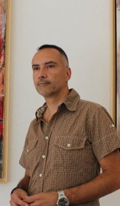 Révélant des océans sereins entre ombre et clarté, où s’entremêlent rêve et réalité d’un autre « espace- temps », où des liens se tissent par la surface colorée comme sculptée, écorchée par l’outil du peintre en superposition de couches de peinture, pour mieux évoquer le passage du temps décrit dans ses tableaux comme des fragments peints de mer abyssale et de cieux liés par un soleil étincelant. Qui se dévoile dans la série « Sea, Sun and Rain » .